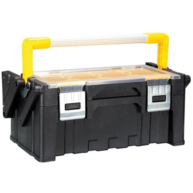 Informazioni sul prodotto Primärfarben Schwarz,Zusätzliche Farben Gelb,Tiefe des Produkts 240 mm,Höhe des Produkts 200 mm,Breite des Produkts 455 mm,Gewicht Produkt 2320 g,Material Polypropylen Proprietà fisiche Schloss-Typ(en) Aluminium Verschlüsse,Anzahl der Fächer 13,Typ der Ecke Viereck,Einstellbare Fächer Nein,Teleskopischer Griff Nein,Trolley-Funktion Nein,Abmessungen der Boxenablage oberes Fach: 370 x 173 x 40 mm unteres Fach: 370 x 173 x 135 mm Proprietà d'uso Herausnehmbare Fächer Ja,Anzahl der Schubladen 2,Werkzeugpalette Nein Dimensioni dell'imballaggio 1 Contenuto della fornitura Schultergurt Nein,Mit Rädern Nein,Handgriff Ja,Zusammenklappbarer Griff Ja Dati ambientali Wasserdicht Nein