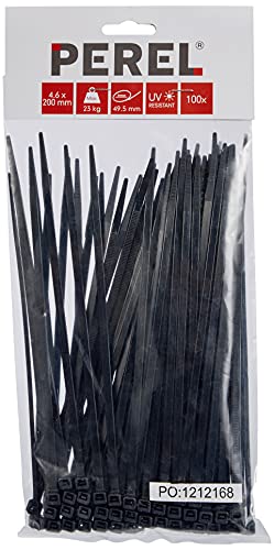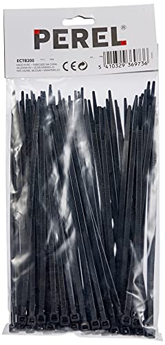 Perel ECTB200-Fascetta stringicavo in nylon, 4.6 x 200 mm, Nero, 100 pezzi