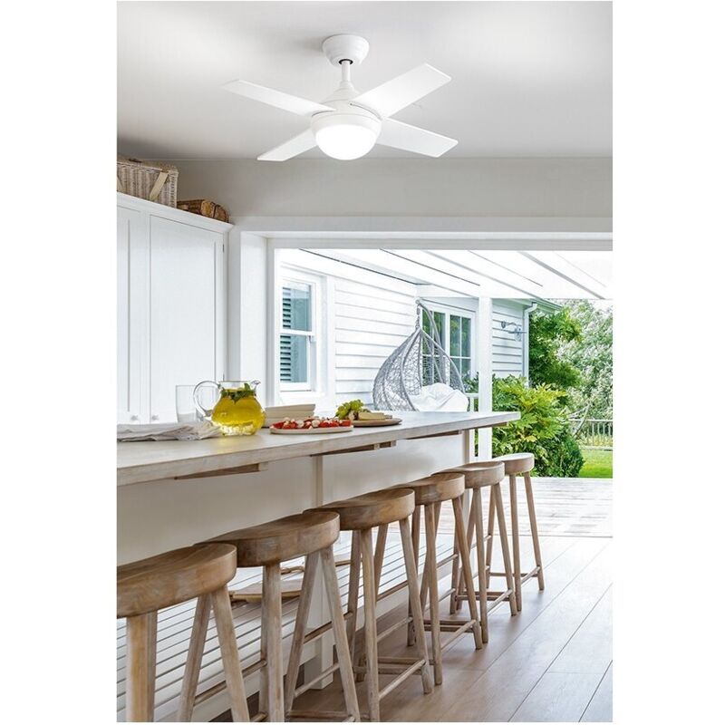 Collezione Ventilatori IL TOP DELLA VENTILAZIONE A SOFFITTO: PERENZ Il ventilatore in metallo di colore bianco e diffusore in acrilico satinato, è un'elegante e funzionale soluzione per rinfrescare l'ambiente.. Inoltre è incluso il telecomando a onde radio, che permette di cambiare la velocità del ventilatore in tutta comodità. Realizzato con materiali di alta qualità, questo ventilatore combina estetica e prestazioni ottimali, grazie al suo motore offre un' esperienza di raffreddamento piacevole senza disturbare l'ambiente circostante. Il design in metallo conferisce al ventilatore un aspetto robusto e resistente, rendendolo adatto a qualsiasi tipo di arredamento. Dotato di pale aerodinamiche di alta qualità, il ventilatore offre una potente ventilazione, garantendo un flusso d'aria continuo e fresco. Il ventilatore dispone di diverse velocità regolabili, consentendoti di scegliere l'intensità della ventilazione desiderata. Grazie alla sua struttura compatta e alla base solida, è