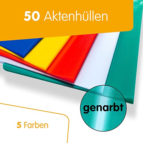 Perfect line 50 buste per atti colorate A4, con apertura laterale & superiore, fogli trasparenti colorati, tasche trasparenti perfette per proteggere carte e documenti