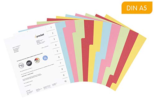 Perfect line 5 registri a colore composti DIN-A5 da 10 parti con una fascia (5x10), 16,3 x 21,5 cm, separatori registro in 5 colori 160g/m², organizzazione perfetta in ufficio