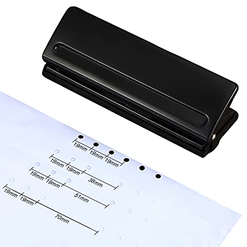 Perforatore 6 Fori Regolabile Bucafogli 6 Fori Perforatrice Fogli da Scrivania Nera Punzonatrice Diary Punch Bucatrice Foro Metallo per 7 Fogli di Carta A4 A5 A6 B7 per Rilegatura in Ufficio, Famiglia