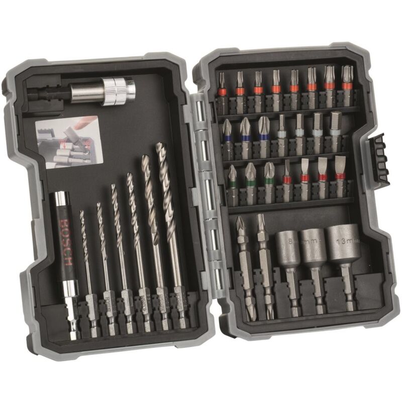 Set di perforazione e cacciaviti per metallo. Bitet a cacciaviti extra extra in 35 pezzi. Il bit del lancio duro extra è una buona scelta per il lavoro generale. Il set da 35 pezzi con bit a cacciavite extra-rigido è una buona scelta per il lavoro generale. Set completo con accessori per foratura essenziale e viti di avvitamento, bit di cacciavite in acciaio modificato S2. Processo di trattamento termico ottimizzato. Durezza media della media. Forte prestazioni La zona di torsione conica dei bit elabora i suggerimenti di coppia benistici. Perché assorbe le forze e le vibrazioni durante le viti. Tutti i bit sono codificati a colori per una panoramica rapida e l'identificazione del tipo di bit corretto. Inoltre, il set di trapani lavorato a precisione da acciaio HSS per tassi di perforazione ad alta velocità in metallo e plastica. Hanno una periferia di dimensioni 1/4 pollici per cacciaviti e cacciaviti per trapano. Ha una periferia di dimensioni 1/4 pollici per ghinde generali con