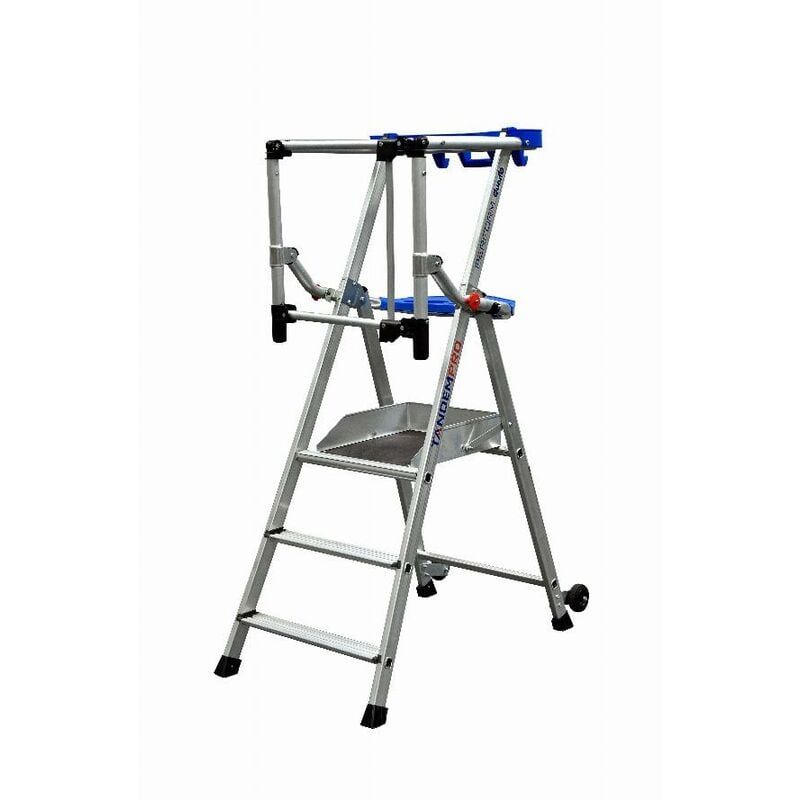 Dettagli: PIATTAFORMA DI LAVORO INDIVIDUALE F3 PERFORM Piattaforma in alluminio ultra-sicura con un'altezza standard adatta alla maggior parte delle persone. Decreto 2004-924 / PIRL - Norme EN 131-7. Omologata NF 3 gradini (compreso il pavimento). Altezza di lavoro 2,70 m. Altezza pavimento 0,70 m. Autoportante. Dimensioni ripiegate: H 2,06 m x L 0,69 m x P 0,25 m. Pavimento antiscivolo 0,50 x 0,40 m. Zoccoli alti 100 mm. Capacità di carico 150 kg. Gradini antiscivolo da 80 mm. 2 ripiani con scomparti di serie. 2 ganci per secchi. Ruote antitraccia Ø 100 mm. Peso 15,7 kg. Assemblato mediante crimpatura. Prodotto in Francia.