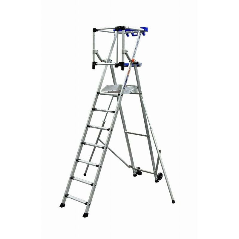 Dettagli: F7 PERFORM INDIVIDUAL WORKPLATFORM Piattaforma in alluminio ad altezza fissa ultra-sicura. Decreto 2004-924 / PIR - Norme EN 131-7. Omologata NF 7 gradini (compreso il pavimento). Altezza di lavoro 3,70 m. Altezza pavimento 1,70 m. 2 stabilizzatori. Dimensioni ripiegate: H 3,18 m x L 0,67 m x P 0,32 m. Pavimento antiscivolo 0,50 x 0,40 m. Zoccoli alti 100 mm. Capacità di carico 150 kg. Gradini antiscivolo da 60 mm. 2 ripiani con scomparti di serie. 2 ganci per secchi. Ruote antitraccia Ø 150 mm. Peso 27,1 kg. Assemblato mediante crimpatura. Prodotto in Francia.