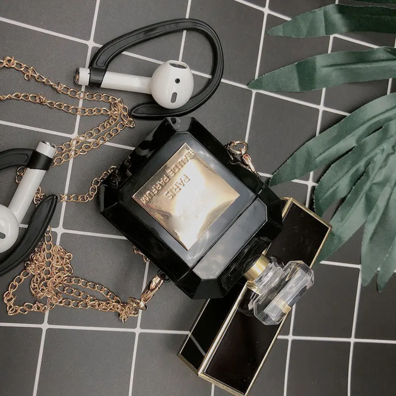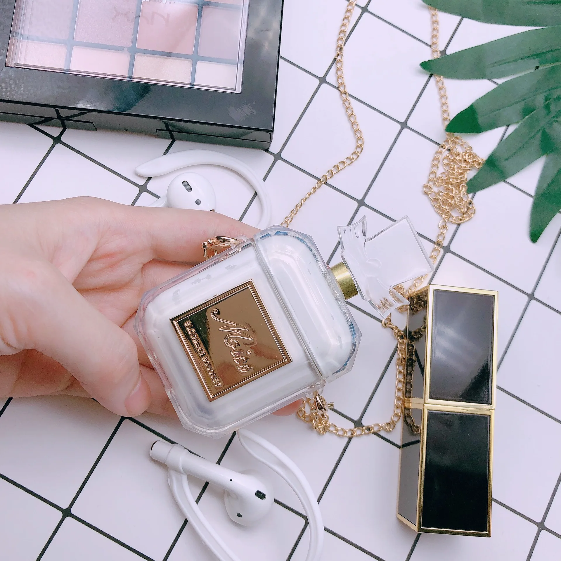 Perfume Bottle Silicone Case for Airpods1/2 or Airpods Pro Earphone Protective Cover Bluetooth Earphone Charging case with Chain