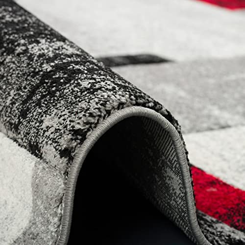 Pergamon Maui - Tappeto di Design Moderno - Rosso Antracite Motivo a Quadri - 5 Dimensioni