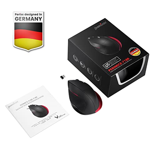 Perixx 718R mouse radio Ottico Ergonomico Nero, Rosso