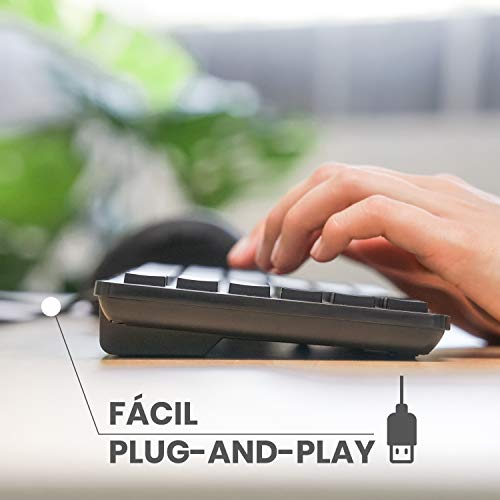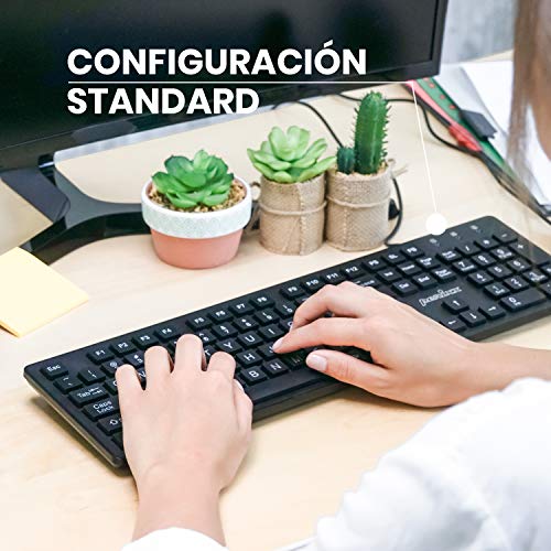 Perixx PERIBOARD-117 Tastiera con cavo USB, configurazione ES e tasti tipo chiclet Stampate in grande, Nero, Spagnolo QWERTY