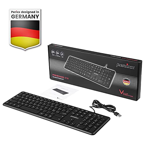 Perixx PERIBOARD-210 Tastiera USB cablata full-size - Tasti a forbice silenziosi a basso profilo - per PC Laptop Tablet - Tasti multimediali - Layout italiano - Nero