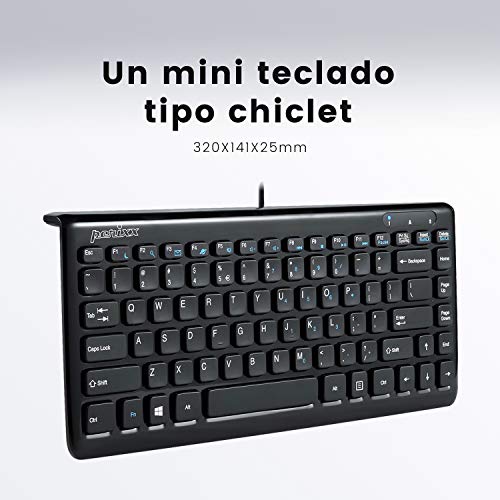 Perixx PERIBOARD-407 Mini tastiera USB, tasti chiclet, Layout em português, Preto