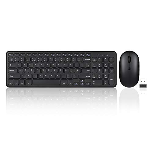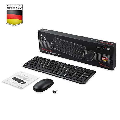 Perixx PERIDUO-613B - Set combinato tastiera e mouse wireless Chiclet, controllo multimediale, clic silenzioso e DPI regolabile, colore: Nero