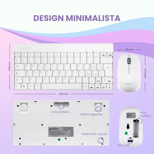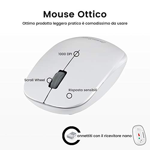 Perixx PERIDUO-712 Kit Mouse e Tastiera Wireless per Windows, Senza Fili da 2.4 GHz, Silenzioso e Sottile, Layout Italiano QWERTY, Bianco