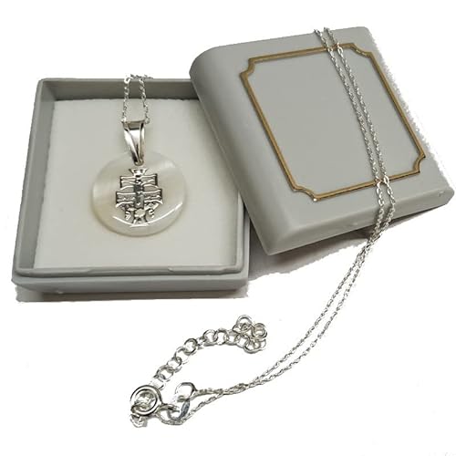 Perlascarel Collana con ciondolo a croce di Caravaca 18 mm in madreperla e argento sterling con catenina da 40 a 45 cm in argento sterling con astuccio, Argento sterling, Madreperla