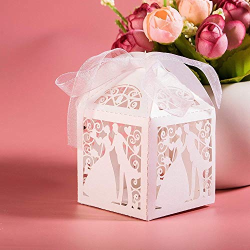 JZK 50 pezzi Bianco sposo sposa scatoline bomboniere scatole portaconfetti segnaposti scatola carta porta confetti, aggiunta per sacchetti bomboniere matrimonio.