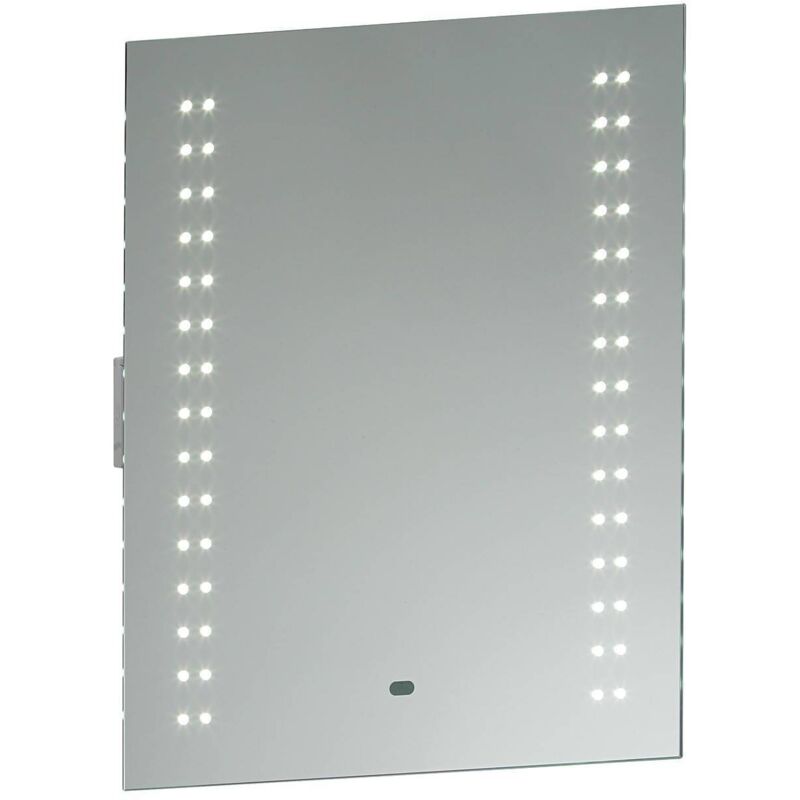 Materiale lampada: Vetro e acciaio Colore lampada: Vetro a specchio e vernice effetto argento opaco Base lampada: Modulo LED 2 x 4,8 W (SMD 2835) Bianco freddo Voltaggio nominale: 220-240 V Grado di protezione (IP): 44 Dimmerabile: Non dimmerabile Temperatura barra: 6500 Lumen: 320 Dimensioni: 600mm altezza x 500mm larghezza x 50mm proiezione
