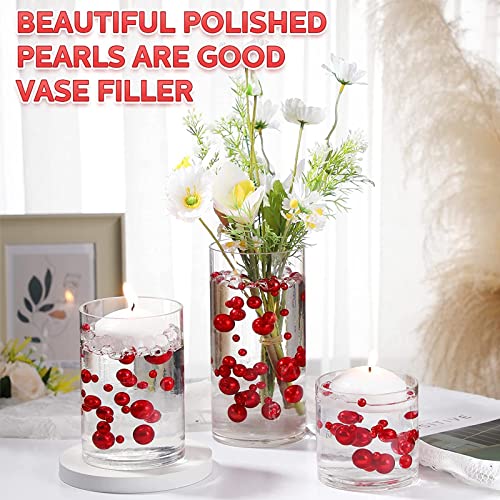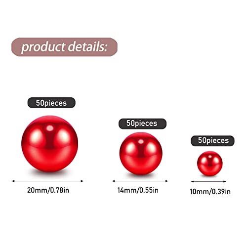 Perle D'Imitazione, 150 Pezzi Perline Galleggianti Riempitivo Vasi Perline Lucide Senza Foro Dimensioni Miste Perline Sfuse Plastica Per Creazione Di Gioielli Fai-Da-Te 8/14/20 Mm (Grande Rosso)