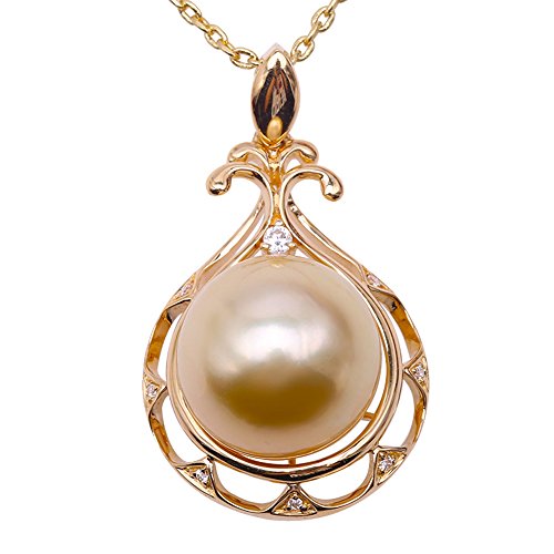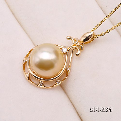 JYX Perle Pendente Australiane Splendido 11,5 mm Rotondo Dorato del Mare del Sud Coltivata Perla Pendente Collana in Oro Giallo 14K Qualità AAA