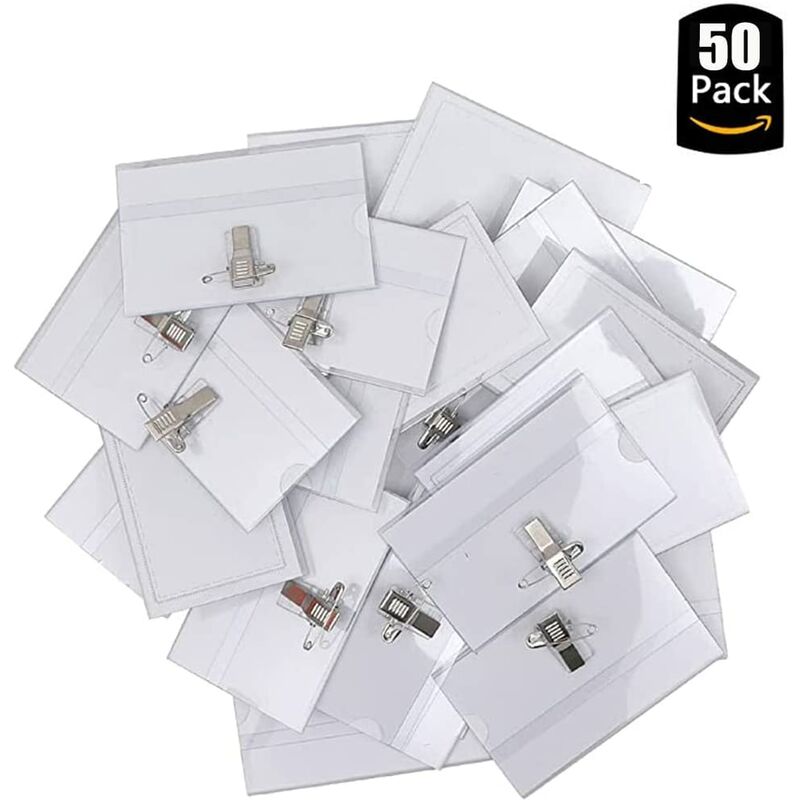 MATERIALE - : La piastra è realizzata in PVC di alta qualità, graffette: acciaio, carta interna: bianca, semirigida. Sicura ed ecologica, resistente alla polvere, la tua tavola non sarà danneggiata o sporca. 【MISURA PERFETTA】: La dimensione è 90x56 mm, che è molto adatta per le carte d'identità più comuni, comprese le targhette con il nome di dimensioni standard, le carte d'identità dell'ufficio o dell'università, ecc. 【COMODO DA USARE】: Sulla piastra è posizionata una spilla da balia, che può essere posizionata ovunque a piacimento, e può essere posizionata sugli indumenti senza utilizzare fori. Si prega di notare che la clip è solo un accessorio e non può essere utilizzata. 【AMPIO UTILIZZO】: Non solo per uffici, ma anche per convegni, chiese ed eventi sportivi. Puoi anche utilizzare questa cartella per i tuoi figli per assicurarti che abbiano le informazioni necessarie. Contenuto della confezione: titolare della carta d'identità*50 Consiglio caloroso: Gentile acquirente, a causa