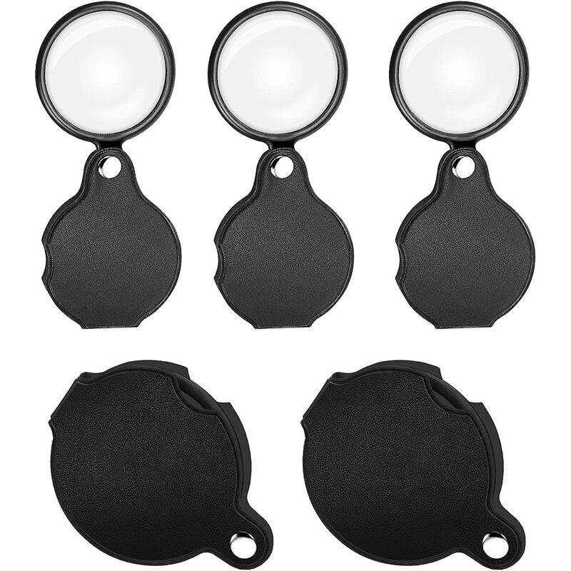 Ampia applicazione: ideale per leggere, giornali, libri, riviste, mappe, lezioni di scienze, gioielli, ispezioni, pietre, artigianato, antiquariato, stivali ecc. Materiale: attaccato a una pelle sintetica nera la custodia e la custodia interna sono realizzate in morbidissima pelle scamosciata per proteggere la lente d'ingrandimento senza lasciare graffi Comodo e portatile: dimensioni del palmo, dimensioni approssimative: 7 x 5,6 cm, facile da trasportare e utilizzare ovunque Dimensioni tascabili: 50 mm, l'obiettivo offre un ingrandimento 10x, un piccolo spazio sul lato è comodo per estrarre l'obiettivo Confezione: Confezione da 5 mini lenti di ingrandimento portatili, sufficienti per soddisfare le tue esigenze di praticità