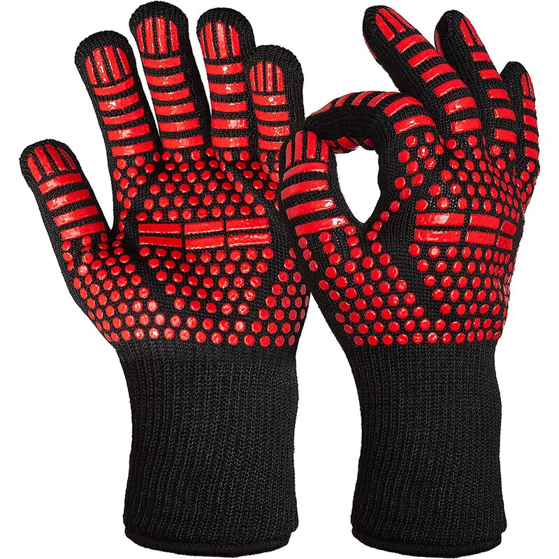 Pratica protezione nell'uso diretto con il calore: con questo pratico guanto da barbecue puoi lavorare direttamente a mano - e senza strumenti aggiuntivi - nel barbecue, nel forno, nel caminetto e nel forno! Guanti da forno resistenti al calore - Uso versatile: il pratico guanto da forno è lungo 33 cm, adatto a uomini e donne. Come guanti da forno, guanti termici o guanti da camino 2 guanti resistenti al calore realizzati con materiali innovativi: grazie a un innovativo mix di materiali collaudati per la produzione di indumenti ignifughi, i guanti da forno resistono fino a 1475°F Presa salda grazie ai punti sui palmi e sulle dita. Il tessuto di cotone denso all'interno dei guanti da forno neri garantisce una vestibilità comoda, funge da isolamento termico per la mano e l'avambraccio Robusto - Durevole: lavabile in lavatrice - Può essere utilizzato più volte. Che si tratti di accessori per barbecue da uomo, manipolazione di bricchette di carbone per barbecue, guanti da forno, guanti da