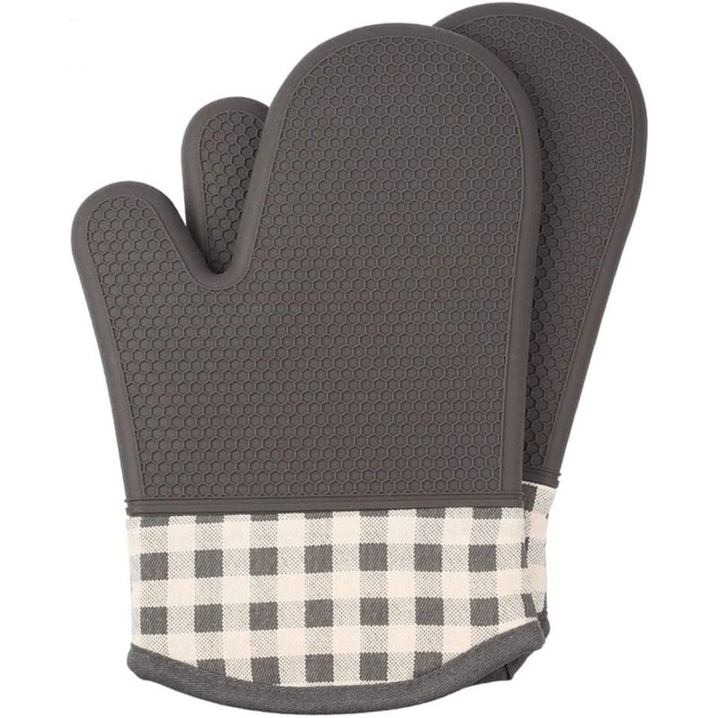 Resistente al calore: i guanti da forno sono resistenti al calore fino a 300°C, smettono di bruciare le mani a causa della temperatura della padella e del forno. Uso confortevole e protezione extra per mano e polso. Impugnature progettate con una fodera imbottita in cotone per un uso confortevole e che coprono il polso. Impugnatura antiscivolo e impermeabile: ciascuno dei nostri guanti in silicone è dotato di superfici di presa modellate per ridurre il rischio di incidenti. Non dovrai più preoccuparti di trascinare piatti, padelle calde o vaporiere: ti consente di lavorare con il cibo in acqua calda o olio.