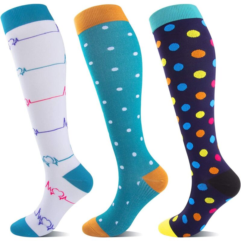 MATERIALE - Nylon+Spandex. Le calze a compressione hanno un alto livello di assorbimento dell'umidità. Il tessuto traspirante mantiene i piedi e le gambe asciutti. La muscolatura del polpaccio è supportata e la circolazione sanguigna, dì addio alle gambe doloranti e gonfie. 【Idea regalo】 Ottima idea regalo, le calze compressive saranno una buona scelta per atleti, infermieri, medici, ecc. jogging, in gravidanza donne, ideali per l'uso quotidiano e le attività all'aperto. 【Calze a compressione】 Le calze a compressione creano la pressione più favorevole sulla caviglia e diminuiscono gradualmente lungo le caviglie.gambe. I muscoli del polpaccio sono supportati e la circolazione sanguigna da reflusso venoso è migliorata.aiuta a rimuovere le scorie dai muscoli e quindi riduce il rischio di dolore e gonfiore. 【IMPORTANTE】Per le calze compressive, sono facilmente lavabili senza perdita di compressione. Tessuto traspirante ad alte prestazioni che mantiene una temperatura ottimale. la taglia