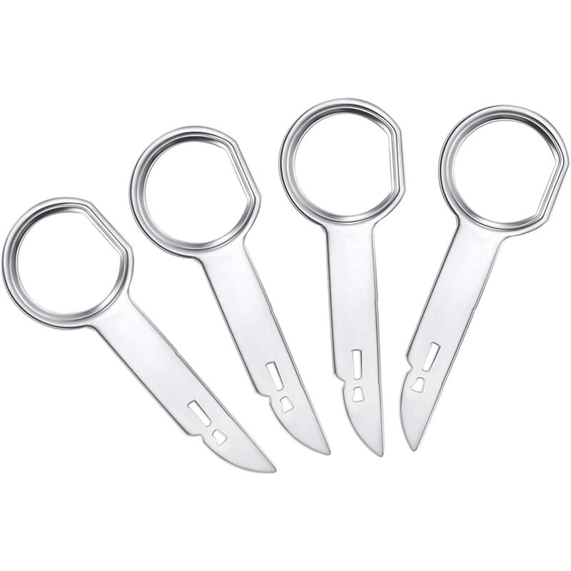 Come si usa: Innanzitutto, inserisci la chiave nella fessura con il lato destro rivolto verso l'esterno fino a quando non senti un clic, quindi ripeti per le altre fessure, usa l'anello degli attrezzi per Estrarre la radio, una volta rimossa la radio premere il lati Abbassare la chiave di rilascio della foglia della molla della radio e fuori Design ergonomico: a differenza della maggior parte degli strumenti di rimozione stereo, questi strumenti di rimozione hanno un aspetto arrotondato e liscio, consentendo di rimuovere facilmente le radio dure e bloccate senza dolore alle dita, risparmiando molto tempo e fatica. Adatto per: questi strumenti per la rimozione della radio sono progettati per rimuovere gli altoparlanti stereo originali compatibili con i veicoli Mercedes e Audi dal 1998 in poi. Materiale robusto: Ogni chiave radio è realizzata in metallo robusto, resistente, non si piega o si rompe durante l'uso, può servirti bene per molto tempo. Pacchetto incluso: Il pacchetto contiene
