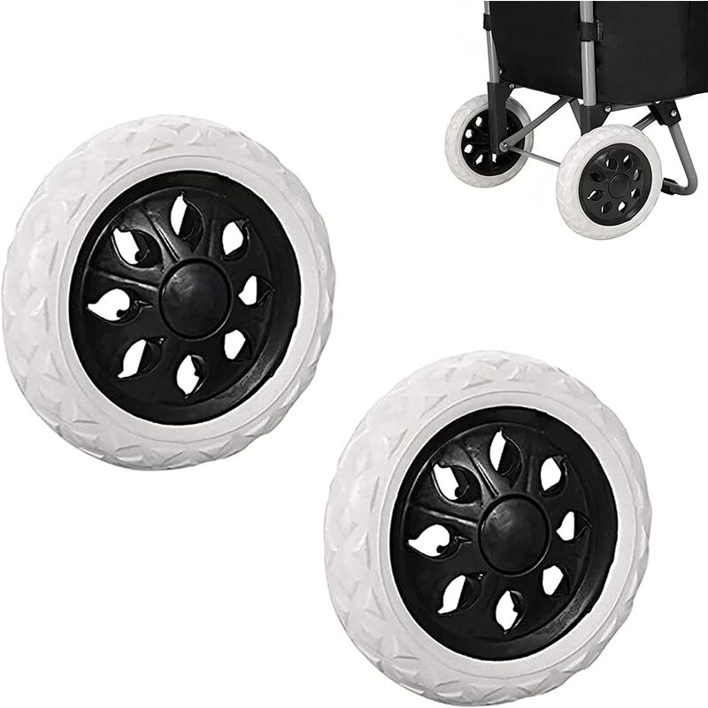 Forte e durevole - Le nostre ruote del carrello della spesa hanno una periferia della ruota più spessa, una buona stabilità, una forte capacità di carico, rendono i tuoi acquisti più facili e piacevoli. 【Materiale di alta qualità】 La ruota del carrello è realizzato in materiale EVA di alta qualità e gommapiuma, che è più resistente all'usura e ha una lunga durata. 【Facile da installare】 Comodo da installare, le ruote resistenti e pratiche possono facilitarne il trasporto i tuoi effetti personali e i tuoi bagagli e ti facilitano la salita di gradini e scale. 【Ruota scorrevole silenziosa】 Le nostre ruote di caddy sono dotate di un nucleo centrale in plastica e hanno una trama speciale sull'esterno in schiuma, hanno un certo effetto di assorbimento degli urti, nessun rumore anomalo e può essere utilizzato con sicurezza. 【Ampio utilizzo】 Le nostre ruote del carrello sostituibili sono adatte per il fissaggio ai carrelli manuali. rovisioni, carrelli da stazione, carrelli per bagagli da