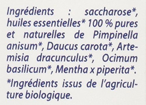 Zuccheria*, acqua, oli essenziali* (Pimpinella anisum*, Daucus carota*, Artemisia dracunculus*, Ocimum basilicum*, Mentha x piperita*). * Prodotto da agricoltura biologica certificato da Ecocert FR-BIO-01