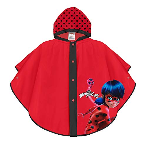 PERLETTI Mantella Pioggia Bambina Miraculous Ladybug - Poncho Impermeabile Bimba Rosso Nero con Lady Bug - Mantellina Antipioggia con Cappuccio e Bottoni - Materiale PVC (Taglia 4/6 Anni)