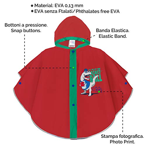 PERLETTI Mantellina Pioggia Colorata da Bambino - Poncho Impermeabile Antivento Bimbo con Dettagli Catarifrangenti - Mantella Antipioggia Sicura con Cappuccio e Bottoni (3-6 Anni, Dinosauro)