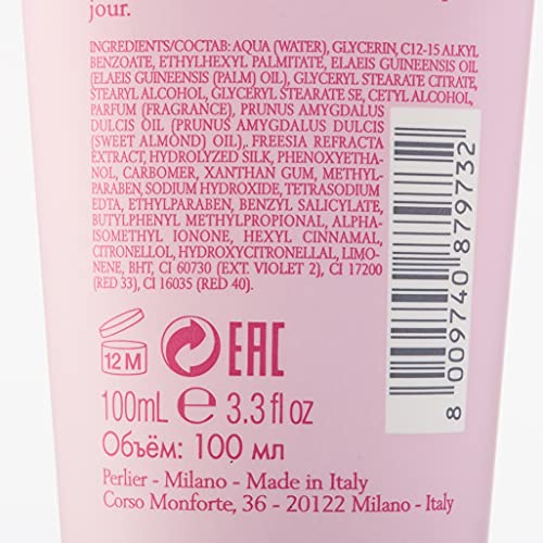 Il profumo vivace della fresia in una crema soffice, arricchita con proteine della seta ad azione protettiva