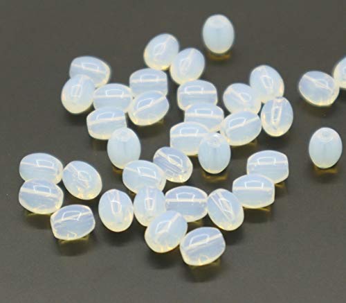 Perlin - D90C - Perline di luna, opale, 8 x 6 mm, 35 pezzi, ovali, perline sintetiche