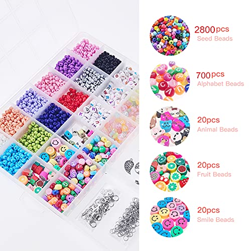 Perline per Braccialetti, 4mm per Bigiotteria Fai da Te, per Collane Colorate Lettere Beads con Elastic Thread Kit Creare Gioielli