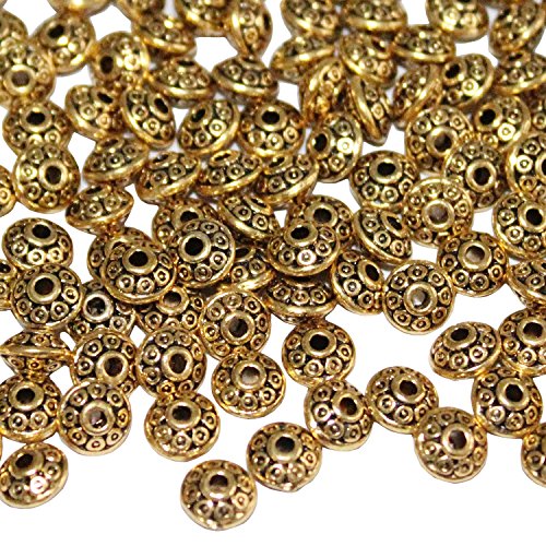 Ljy Perline distanziali in stile europeo per fare gioielli, da 6 mm di diametro, dal colore dorato, in stile anticato, confezione da 200