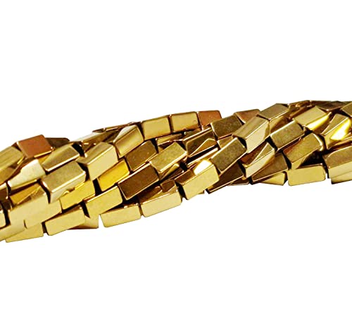 Perline di ematite dorate in ematite, 4 x 2 mm, non magnetiche, rettangolari, cilindri, 70 pezzi, 1 filo
