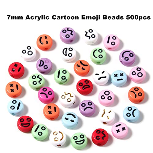 【500 pezzi di perline acriliche per cartoni animati Emoji】 500 pezzi di perline rotonde con faccina sorridente, perline Emoji, perline con faccina felice tra cui scegliere. Perline di espressione oblate in acrilico, diametro circa 7 mm, spessore circa 3,5 mm, diametro del foro circa 1,3 mm, confezione da 500 pezzi.