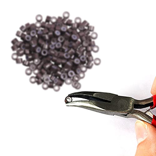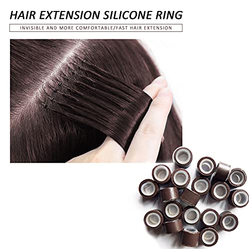 300 perline foderate in silicone da 5 mm, Linkies per l'incollaggio di extension di piume di capelli umani e 2 pezzi per extension per capelli, infila aghi e ganci per extension di capelli o piume