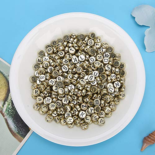 Perline con lettere, perline acriliche, 500Pcs perline Organizer Alphabet Bead Kit Abbigliamento per gioielli artigianali fai-da-te(Golden)