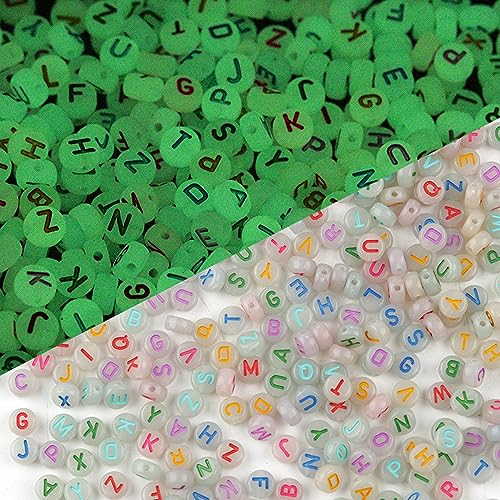 Perline con Lettere e Numeri per Braccialetti, 800 PZ Lettera Perline e Numeri Perle Acrilico per Gioielli Fai Da Te Collane Braccialetti Bigiotteria Arti e Mestieri(Fluorescenti e Non Fluorescenti)