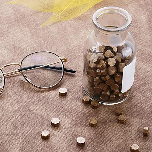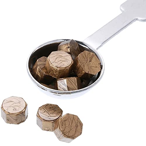 Perline ottagonali di ceralacca, con 2 candele da tè e 1 cucchiaio per fusione, per sigilli, 230 pezzi (colore bronzo)