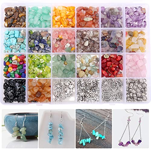 Perline Pietre Naturali Kit, Pietre Preziose Perline Di Gioielli In Cristallo Set Con Perline Di Cristallo, Filo Per Gioielli, Pinze E Ganci Orecchini Ad Anello E Creazione Di Gioielli