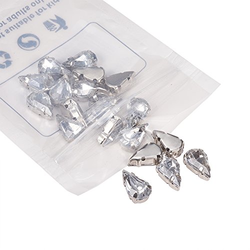 20 Pcs Perline Rhinestone Acrilico A Goccia Chiaro,Con Accessori In Ottone,Colore Metallo Platino,13x8x5.5mm, foro: 1mm