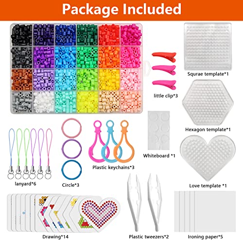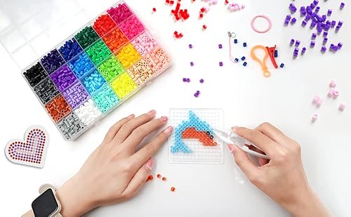 【Perline da Stirare Kit】Perline a fusione set include perline di fusibile ad acqua da 5 mm di 2400 pezzi in 24 colori, 3 x pegboard, 5 x carta da stiro, 3 x fermagli Per Capelli, 6 x portachiavi, 2 pinzetta ecc., ci sono abbastanza perline e accessori per progettare diverse opere d'arte, che stimolano notevolmente la tua creatività e immaginazione.Set di perline artigianali multicolori adatto a partire dai 3 anni
