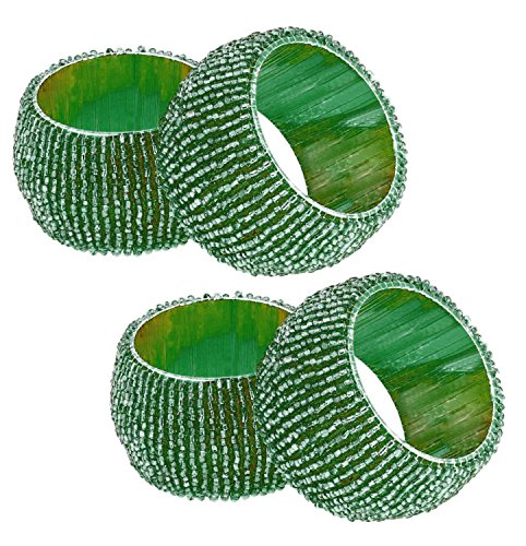 Set di 4 portatovaglioli ad anello con perline verdi, ideale come regalo per compleanno, Natale, qualsiasi occasione, perfetta come decorazione per la casa, 3,8 cm