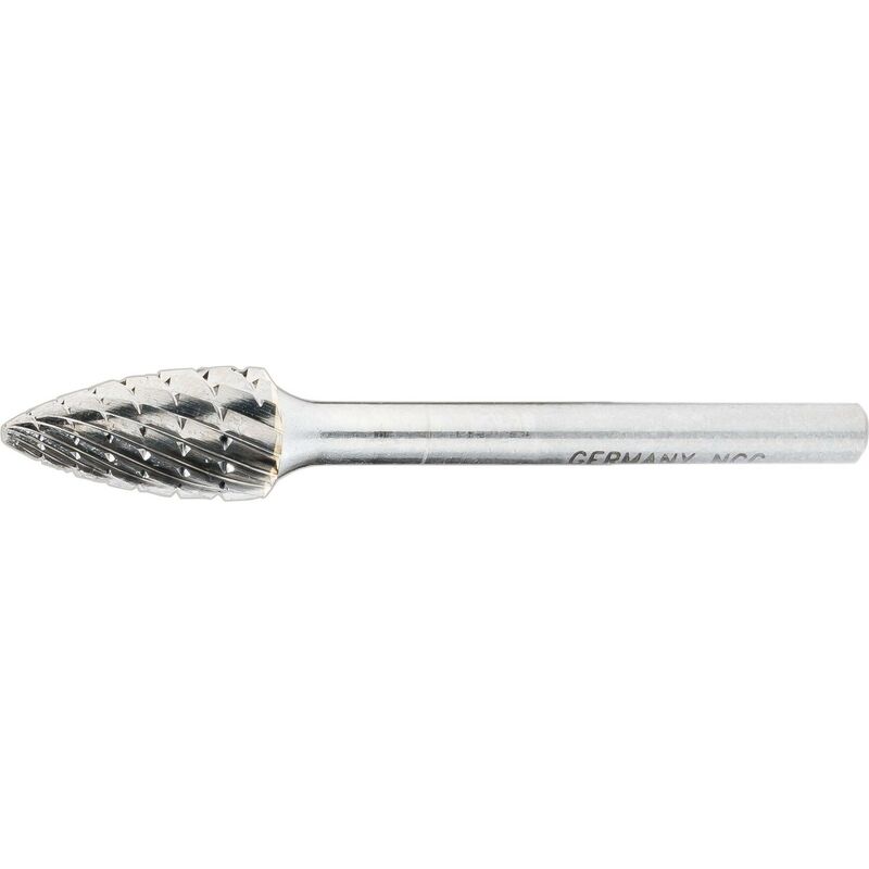 Applicazione: Impiego universale nella lavorazione di metalli su quasi tutti i materiali. Pulitura, smussatura, bisellatura, livellamento o lavorazione di profili Durata elevata e buone prestazioni in termini di asportazione di trucioli con impiego su diversi materiali Perno di fresatura, forma conica Per macchine di propulsione guidate a mano o stazionarie Secondo DIN 8032 Consigli d'uso di HAZET: Utilizzare regimi più elevati possibili La superficie di contatto tra il perno di fresatura e il pezzo da lavorare non dovrebbe superare il 30% dell'estensione completa del perno di fresatura Perni di fresatura con asta da 3 mm Lunghezza di lavoro: circa 13 mm (forma cilindrica e conica) Made in Germany Dimensioni dell'imballaggio 1