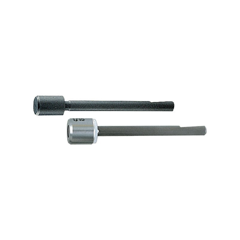 Perno guida fisso: a nitrurazione, tornito di precisione. Perno rotante: temprato in superficie, rettificato. Dim. Da 01/2,4 a 1/8,4 − perno guida fisso. Dim. da 1/8,5 a 1/18 − perno rotante con canalino passaggio lubrorefrigerante. Dim. da 2/11,5 a 2/13 − Perno guida fisso. Dim. da 2/14 a 2/32 − perno rotante con canalino passaggio lubrorefrigerante. Uso: Se si utilizza il perno guida rotante (con canalino lubrorefrigerante) Dim. 1 e Dim. 2 sul portautensili n. art. 156720 Dim. 1/20, il lubrorefrigerante giunge direttamente al tagliente per un'asportazione ottimale del truciolo. Dati tecnici Tipo di prodotto Perno guida Lunghezza complessiva, mm 105 ⌀ Gambo, mm 10 ⌀ Perno guida, mm 18