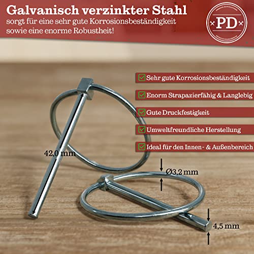 Perno di sicurezza PD® pieghevole 4,5 mm con perno di sicurezza (DIN 11023) | perno di sicurezza in acciaio zincato | perno di sicurezza per trattori, camion e come elemento di fissaggio | 2 pz.