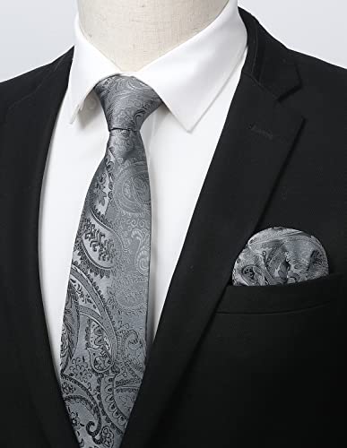 Peronway Cravatta floreale Paisley da uomo per festa di nozze fazzoletto cravatta e tasca quadrata Set, Grigio, Taglia unica